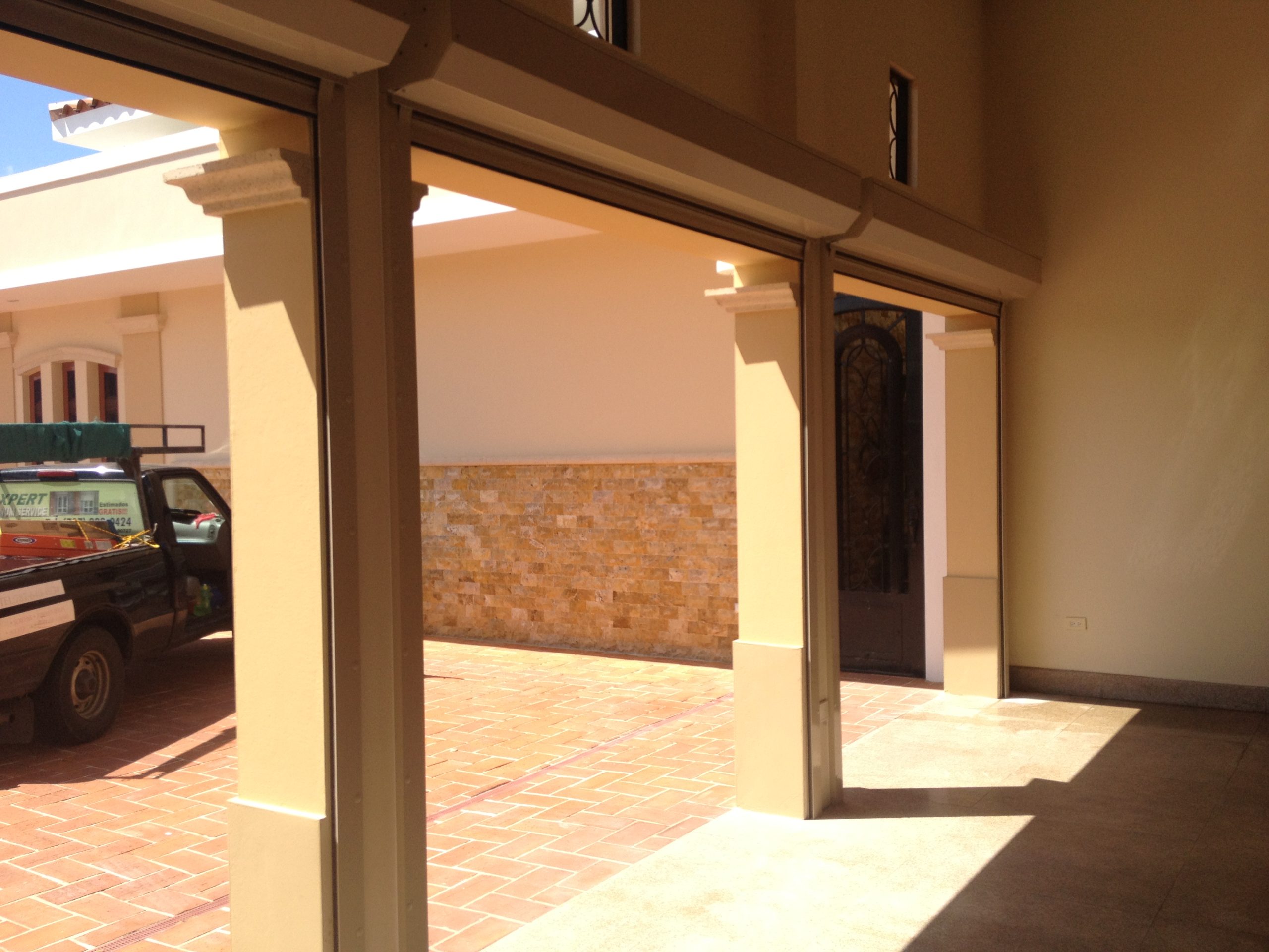 Este tipo de tormenteras, aparte de su uso contra huracanes, ha sido mayormente aplicado para asegurar las residencias o negocios, de las altas incidencias y actos criminales. Manufacturado y compuesto por los mejores perfiles en aluminio, pintado con el procedimiento electrostático, pestillos sólidos en aluminio, herrajes en “stainless steel”, cerradura con llave e instalado con tornillos galvanizados, recomendados por DACO.